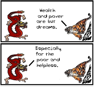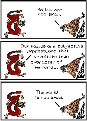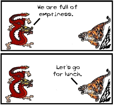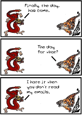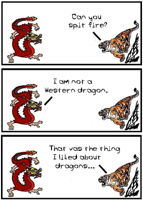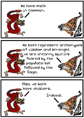 Maybe it's a good opportunity for some trivia. Dragon and Tiger is made by two philosophy professors who are by no means specialists in the Eastern traditions (but -like most you- are willing to learn!) As a matter of fact, this comic deals less with reality and more with our everyday misunderstandings of the East! We hope we can start updating more often in the forecoming months. Until then, see you on Fridays!